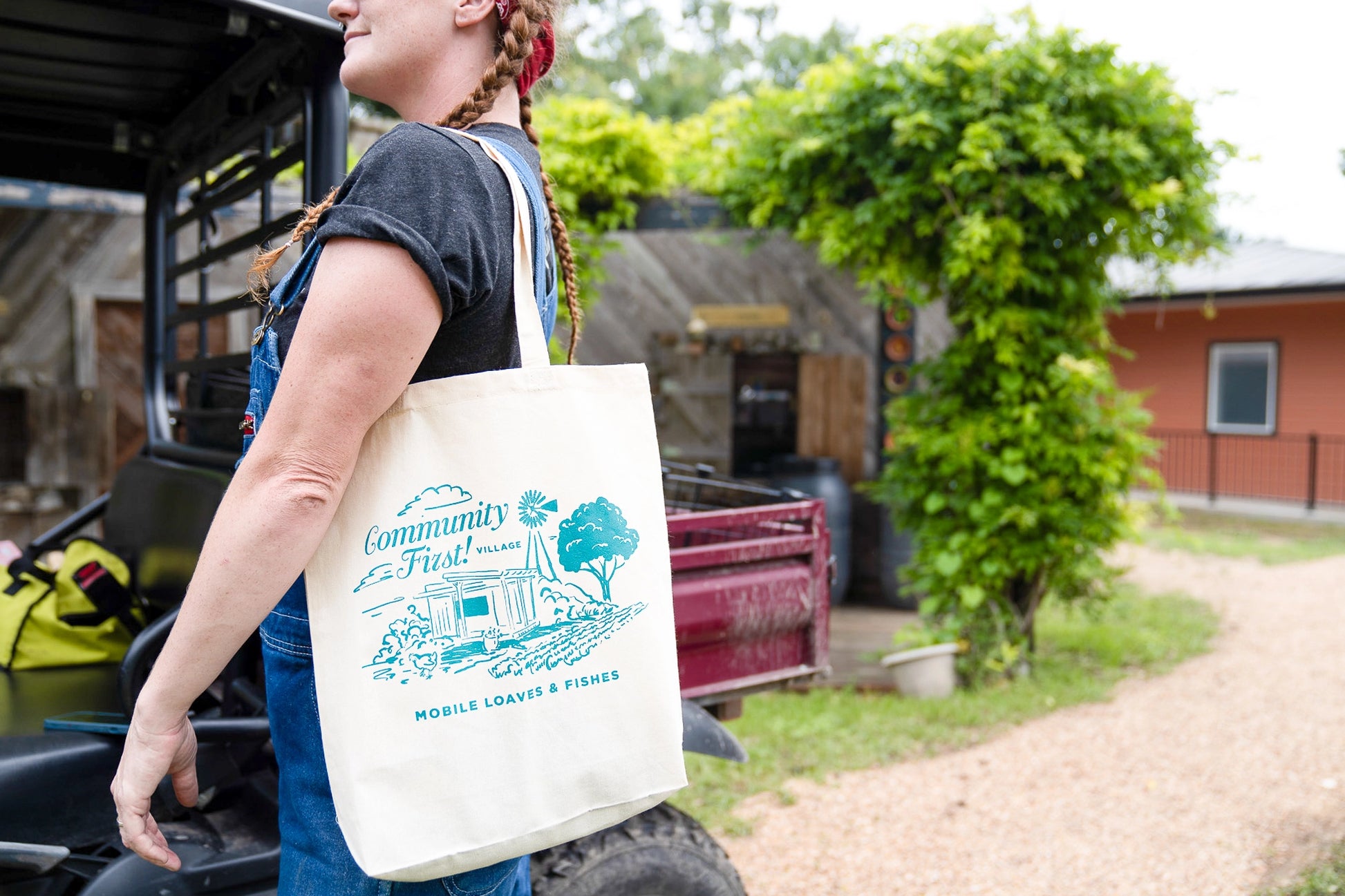 You can help support our gardens and neighbors by purchasing one of our garden-inspired totes. With comfortable fabric handles, our totes can be carried over the shoulder or by hand, offering convenience for various activities like shopping, commuting or running errands. They are a practical accessory combining functionality, a timeless aesthetic, and a touch of Mobile Loaves & Fishes style!