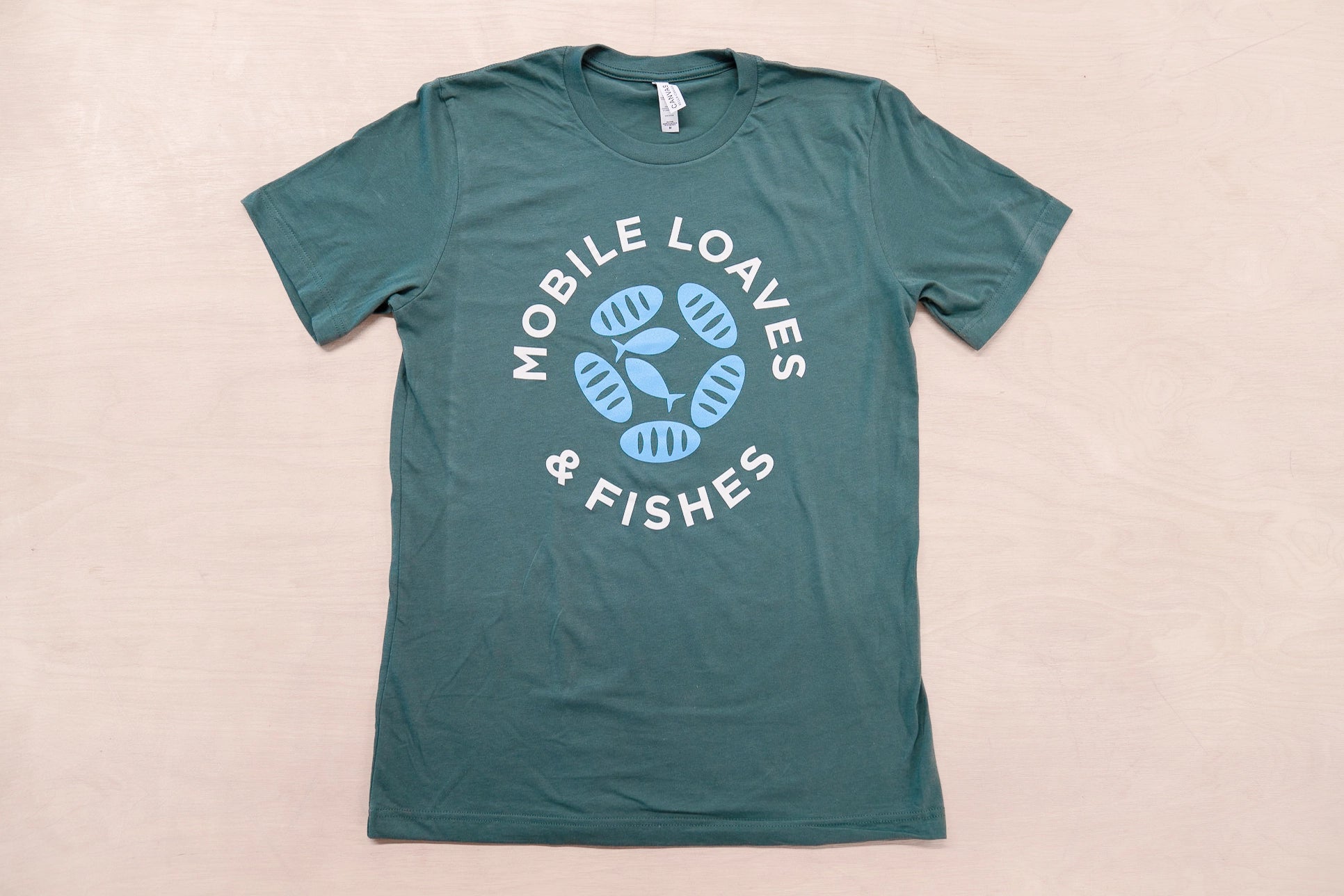 Mobile Loaves & Fishes has been empowering communities into a lifestyle of service with the homeless since 1998. The MLF Icon Tee is a super soft, 100% cotton tee, proudly featuring our loaves and fishes icon. Purchase yours today and support the work we do together at the villageMobile Loaves & Fishes and help inspire friends in your community into a lifestyle of service with the homeless.