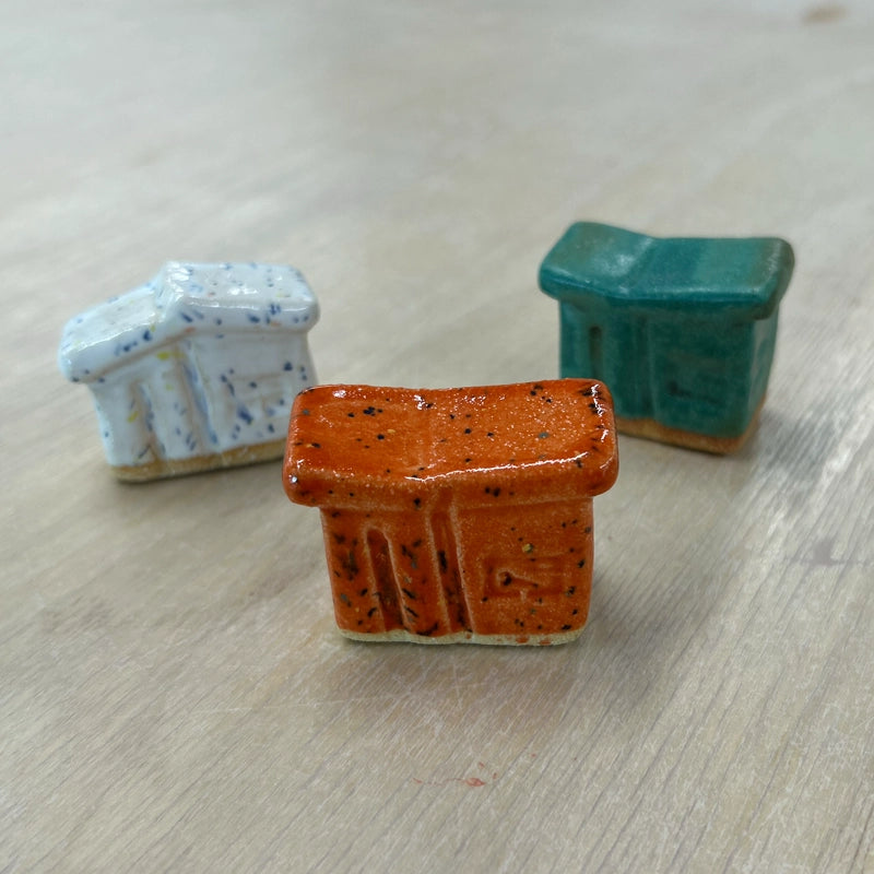 Cheryl, a neighbor who participated in the Tiny Victories 2.0 design competition, got to work with an architect and builder team to design the butterfly roof tiny home that this ceramic tiny home is modeled after.