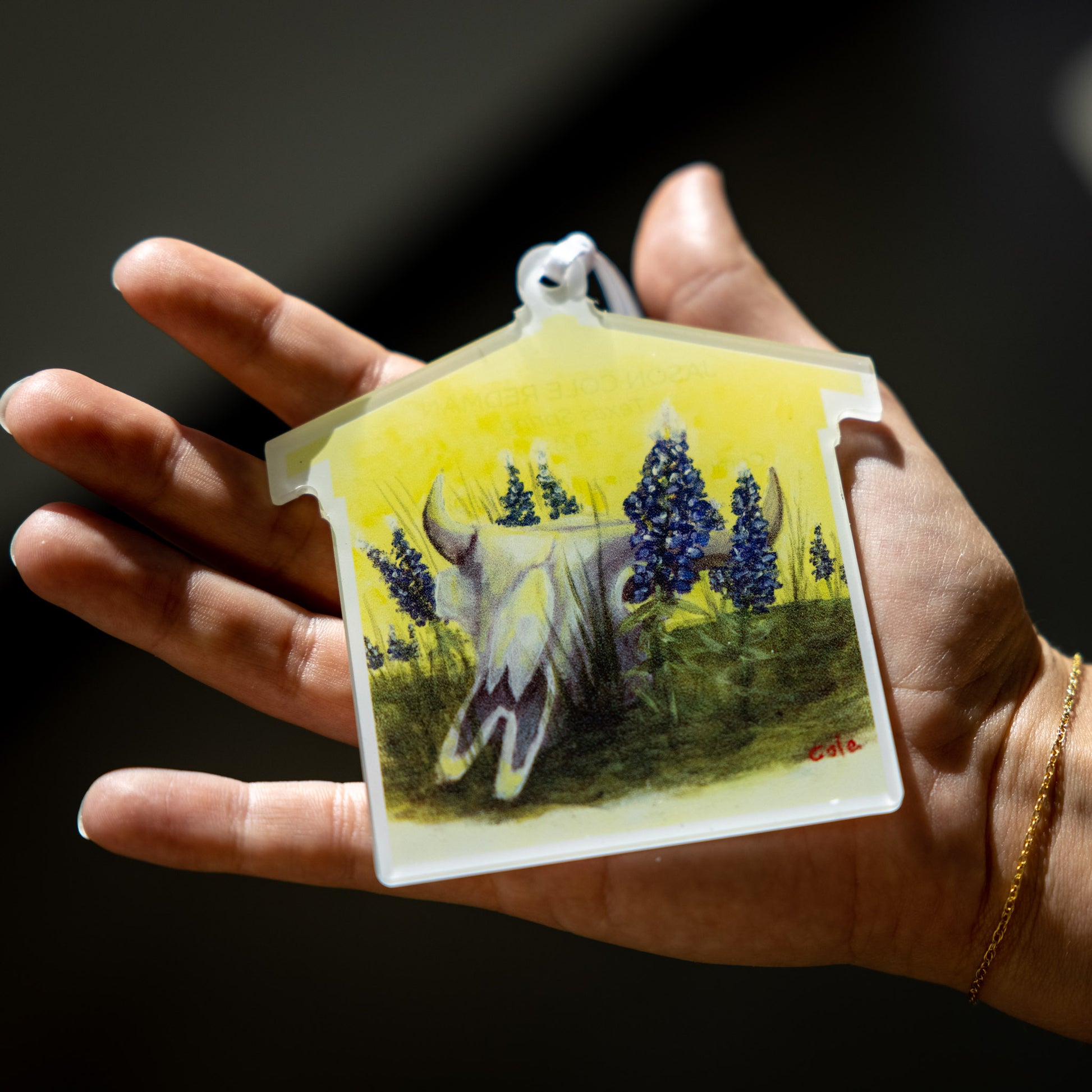 Jason’s “Texas Spring” ornament exhibits the rustic feel of the Texas Hill Country and can be sent to anyone who might be missing home.