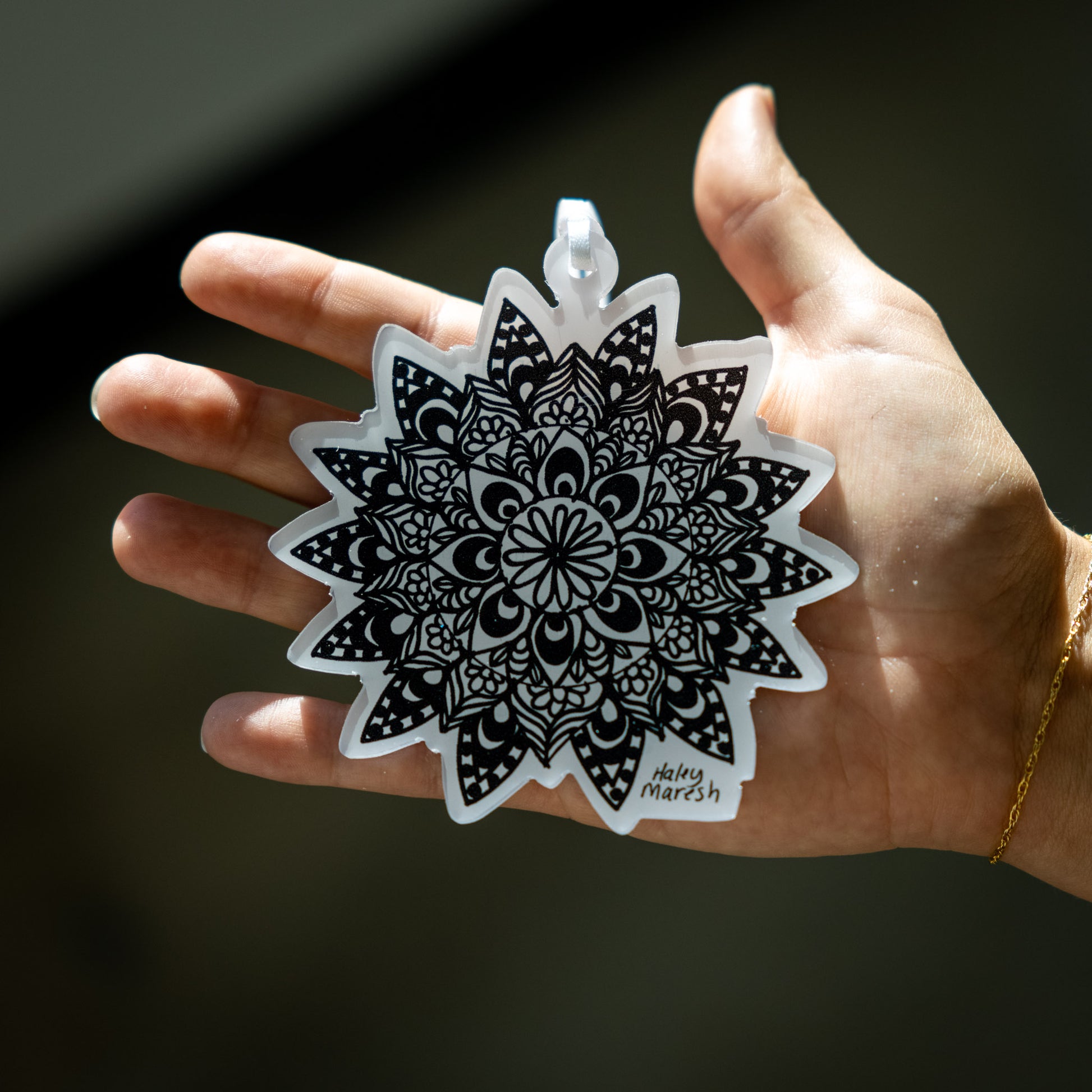 Haley’s “Mandala” ornament is intricately detailed and will be a unique addition to your holiday season decor.