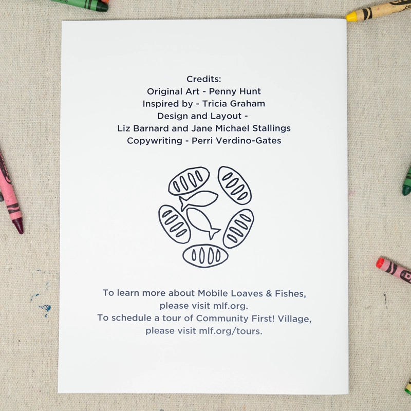 Discover the inspiring story of Community First! Village through the eyes of Penny, a talented village neighbor. This beautifully illustrated coloring book brings to life the journey of a compassionate community dedicated to lifting up those who have experienced homelessness. With playful drawings and heartfelt storytelling, each page invites you to explore the vibrant, hopeful world of Community First! Village while adding your own creative touch. Perfect for all ages, this coloring book is more than just art—it's a celebration of community, resilience, and the power of home.